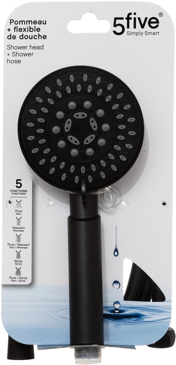 5Five Handdouche met Doucheslang - Zwart - 5 Sproeistanden