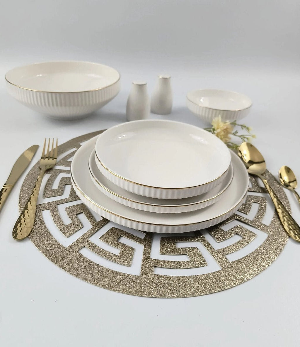 • Afwerking: Fijne gouden rand rondom elk stuk