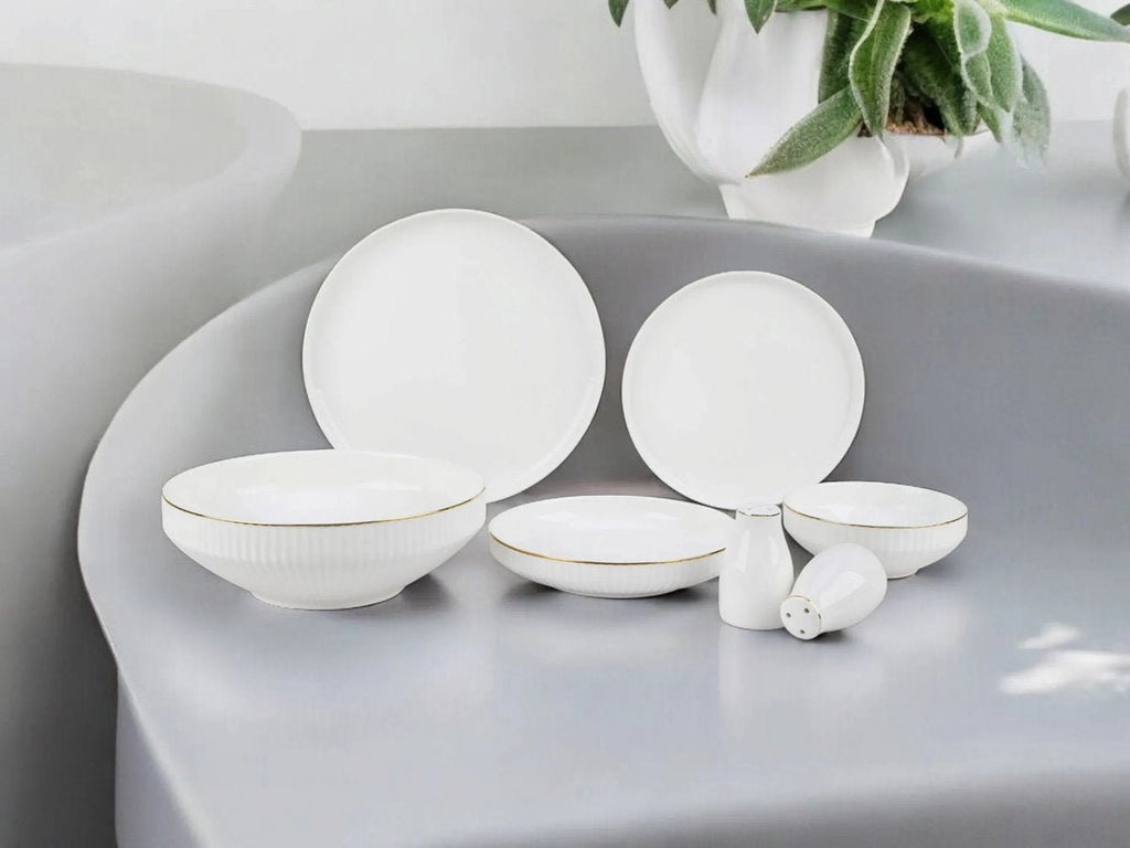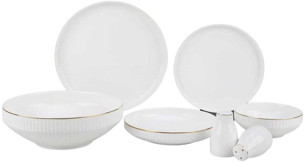 Almina Borneo - Porseleinen Serviesset - 27-delig - Wit/Goud - 6-Persoons - Dinerset