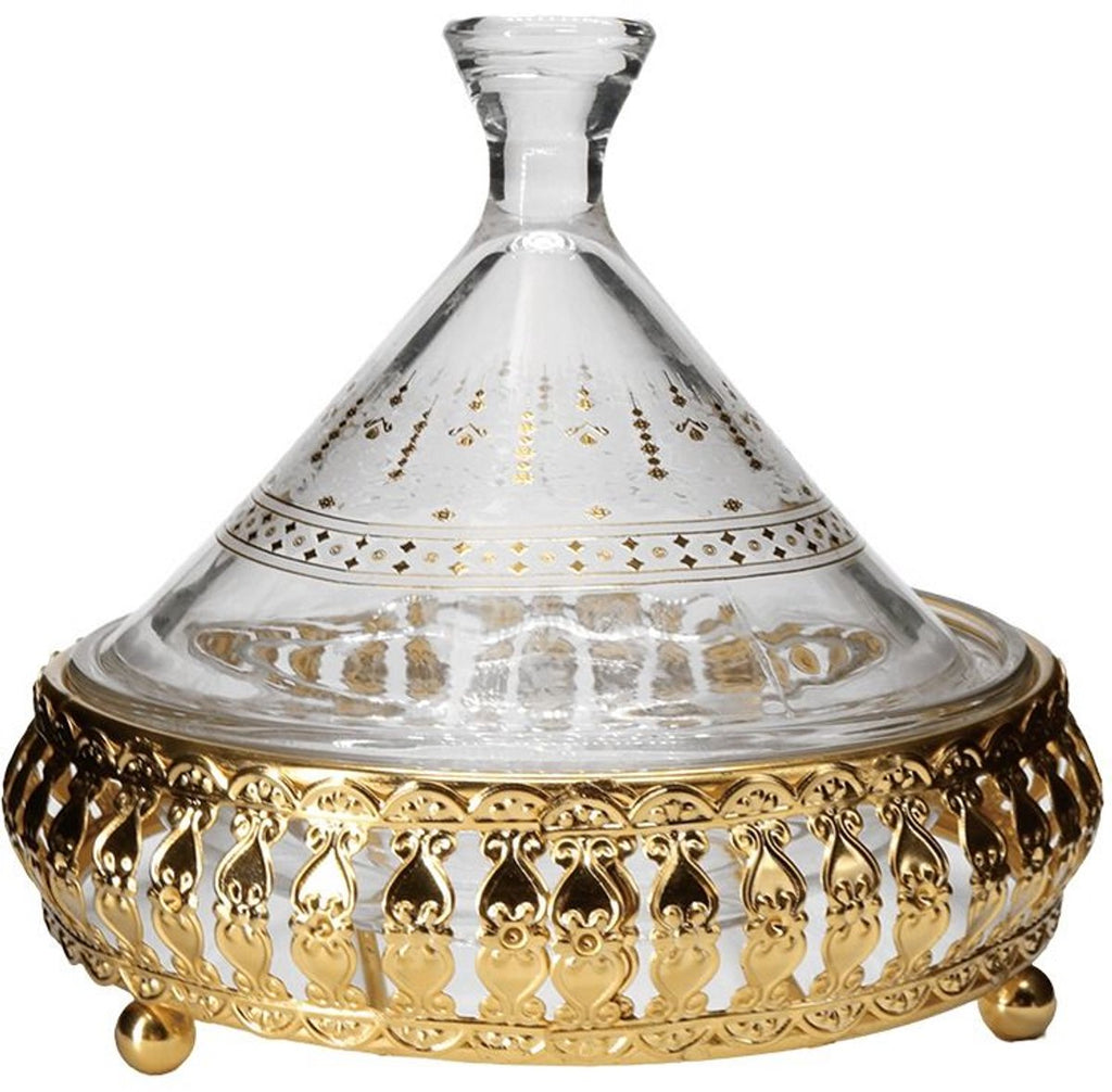 Geef je tafel een luxueuze en verrassende touch met de Bricard Amuseschaaltje Set. Deze set van 2 mini tajine schaaltjes met deksel is perfect voor het stijlvol serveren van amuses, kleine voorgerechten of desserts. Vervaardigd uit transparant glas met goudkleurige accenten, zorgen deze schaaltjes voor een verfijnde presentatie die direct in het oog springt.