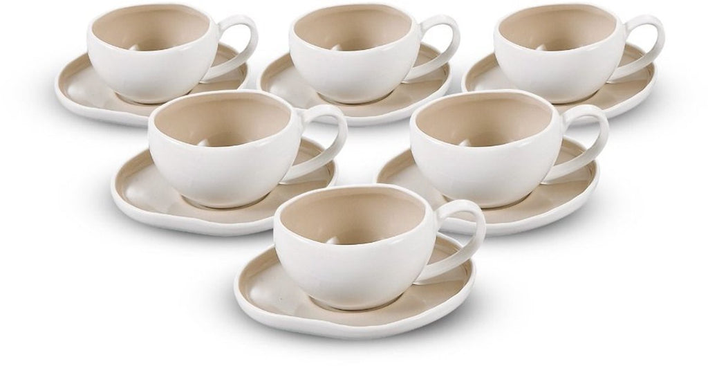 Bricard Barles Espressoset - 12-delig Wit/Taupe - 125ml - Porselein - Koffiekopjes