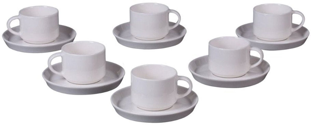 Bricard Porselein - Lunel Espresso Set - 90ml - Set van 12 - Wit - Turkse Koffie Kopjes met Schoteltjes