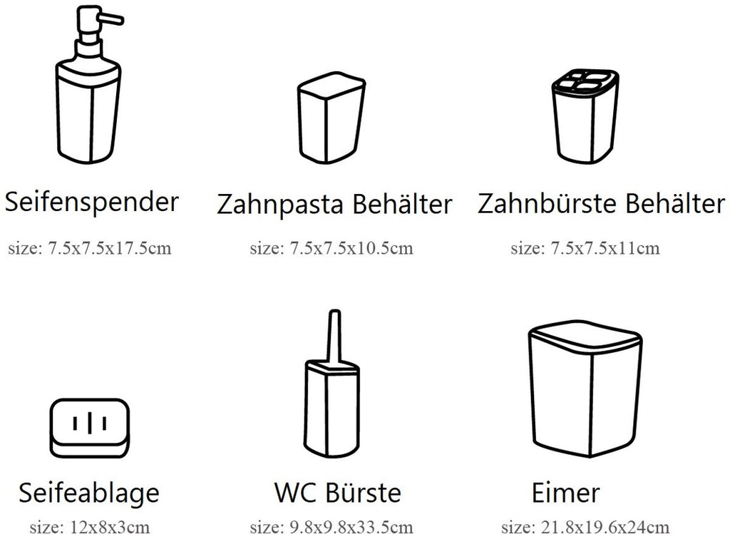 - Compleet 6-delig set voor een stijlvolle en overzichtelijke badkamer