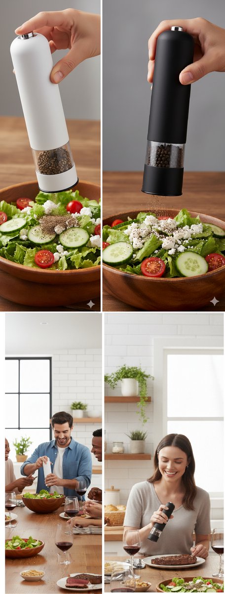 • Voeding: werkt op 4x AA-batterijen per molen (niet inbegrepen)