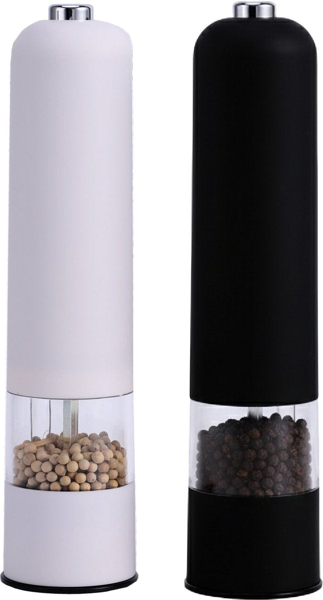 Cheffinger Elektrische Peper- En Zoutmolen Set - Zwart/Wit - Pepermolen - Zoutmolen - Verstelbare Maalgraad - Kruidenmolen