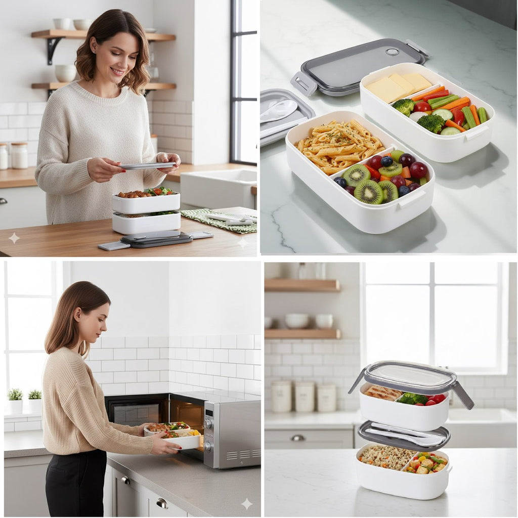 Cheffinger Lunchbox met Bestek - Wit - Bentobox - Multifunctioneel Voor Werk en School - Meal Prep Bakje