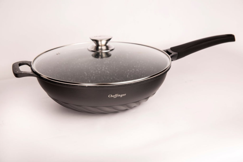 Met de Cheffinger Wokpan XL – 32 cm kies je voor kwaliteit, stijl en functionaliteit in één. De perfecte pan voor wie dagelijks geniet van smaakvol en gezond koken met gemak.