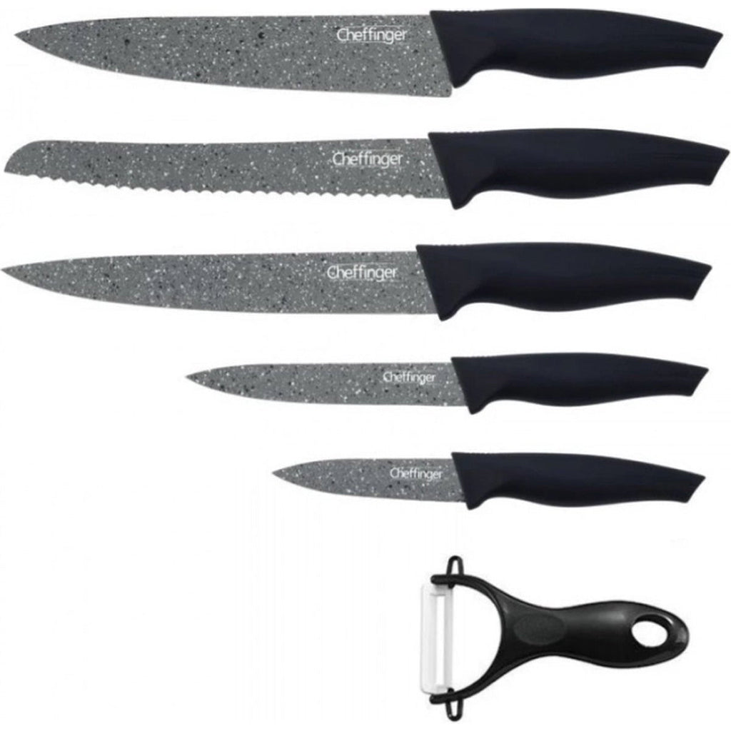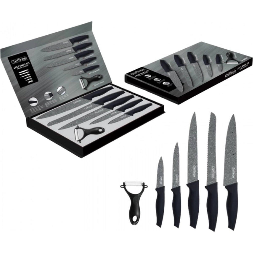 Met de Cheffinger 6-delige Messenset haal je kwaliteit, comfort en elegantie in huis – een onmisbare set voor wie houdt van koken met klasse.