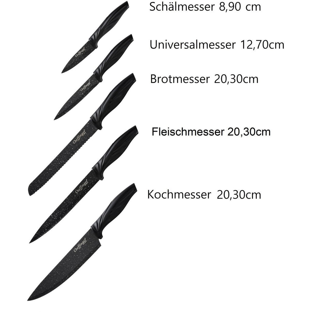 Met de Cheffinger 6-delige Messenset voeg je niet alleen kwaliteit en efficiëntie toe aan je keuken, maar ook een vleugje luxe en verfijning – koken wordt een waar genoegen.