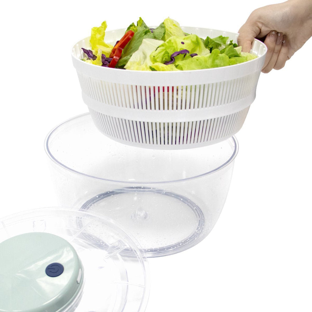 Met deze elektrische slacentrifuge maak je moeiteloos een frisse, droge salade – zonder geknoei, zonder gedoe.