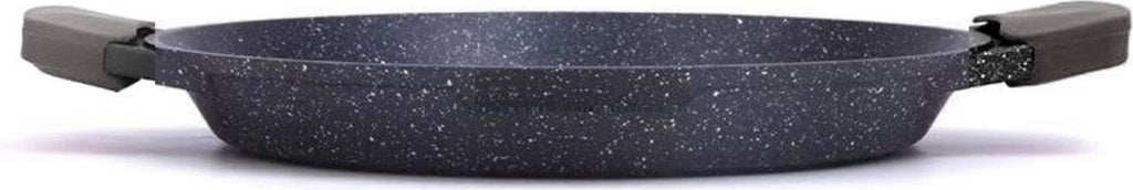 Breng Spaanse sferen naar je keuken met de Cheffinger Paellapan – dé perfecte pan voor paella én meer. Deze robuuste pan met een royale diameter van 32 cm is vervaardigd uit hoogwaardig gietaluminium en voorzien van een duurzame, krasbestendige marmeren antiaanbaklaag. Dankzij de magnetische bodem is hij geschikt voor alle warmtebronnen, inclusief inductie.