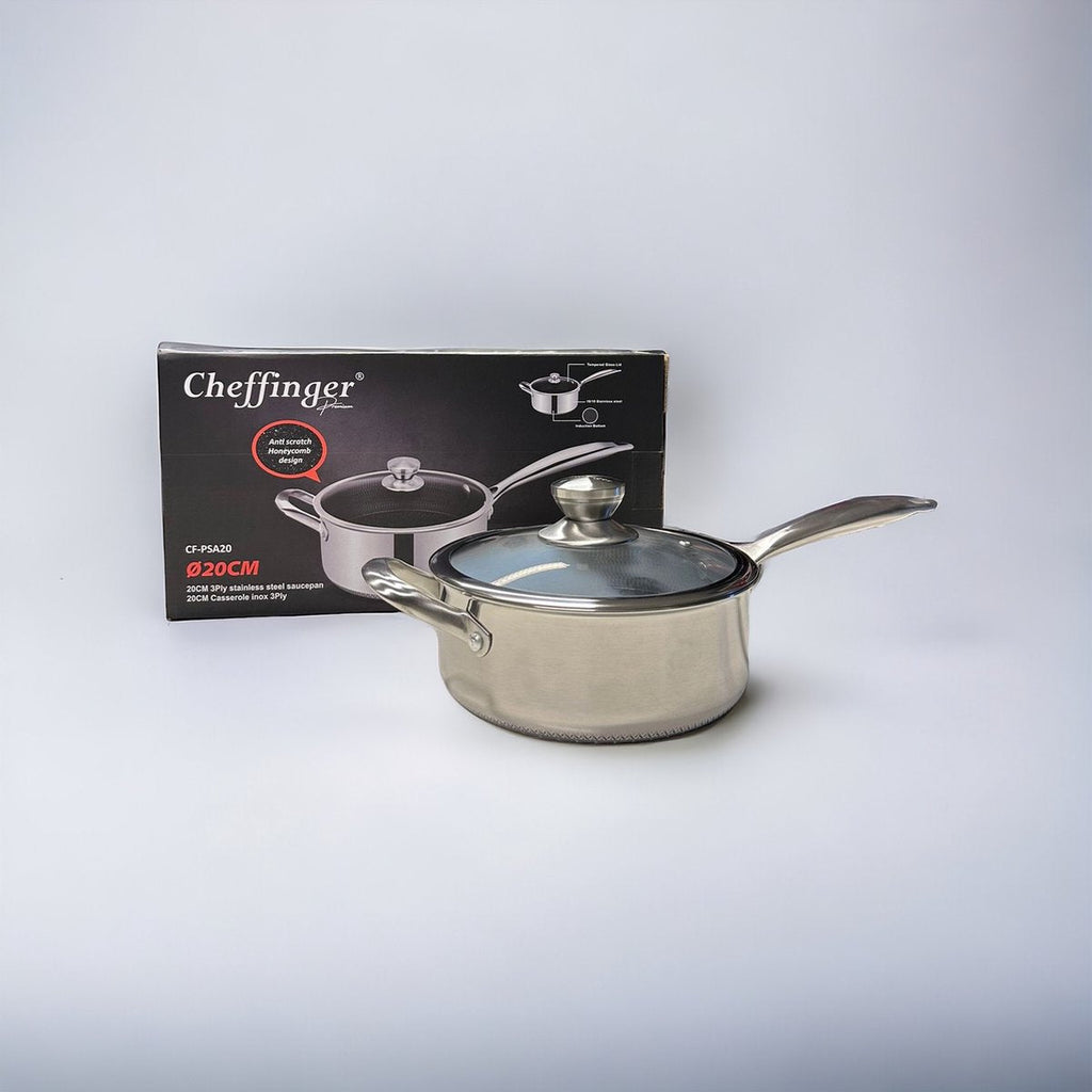 Cheffinger Steelpan met Deksel - 20cm - RVS - Honingraat - Inductie