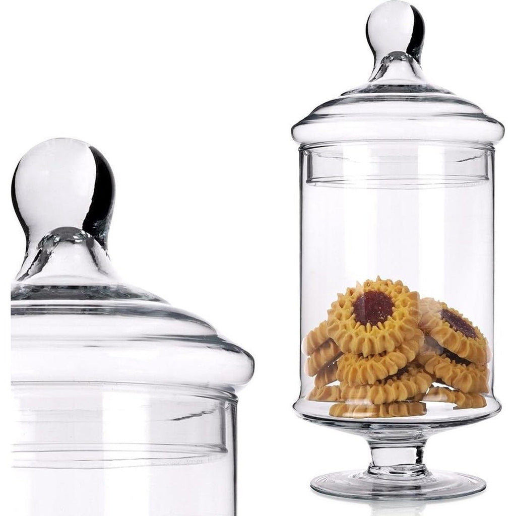 Geef je feestdecoratie of interieur een chique upgrade met deze Prachtige Glazen Snoeppot op Voet met Deksel – 33 cm hoog, dé perfecte keuze voor elke candy bar, sweet table of stijlvolle presentatie. Deze elegante glazen pot straalt luxe uit en is een blikvanger op elke gelegenheid, van bruiloft tot babyshower.