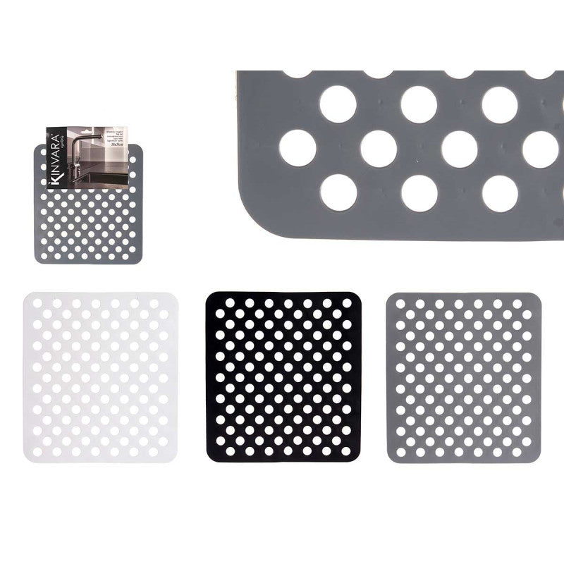 Kinvara Gootsteenmat - Vierkant 28x31 cm - Set van 3 - Wit, Grijs, Zwart - Spoelbakmat - Spoelmat - Spoelbakbescherming - Spatbescherming