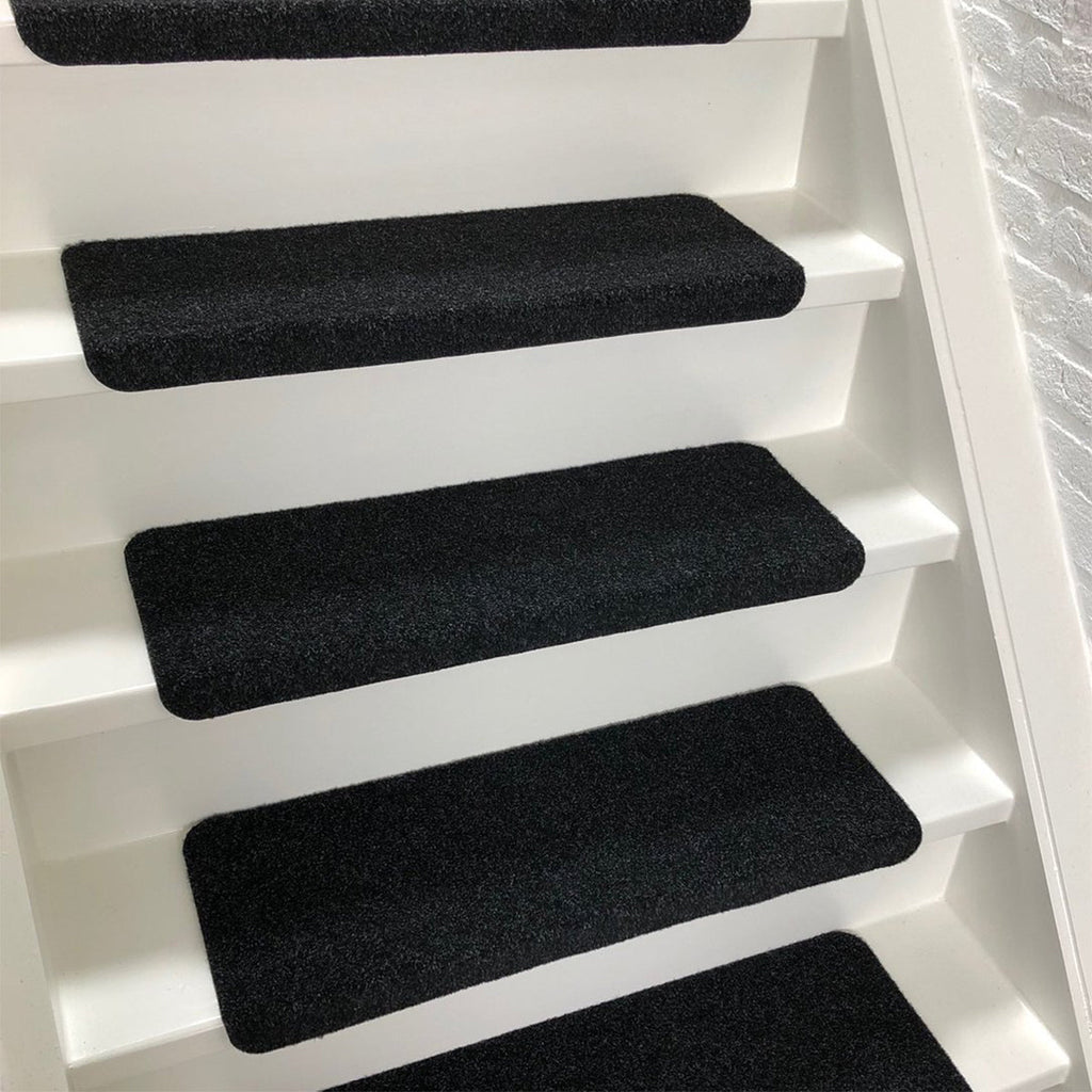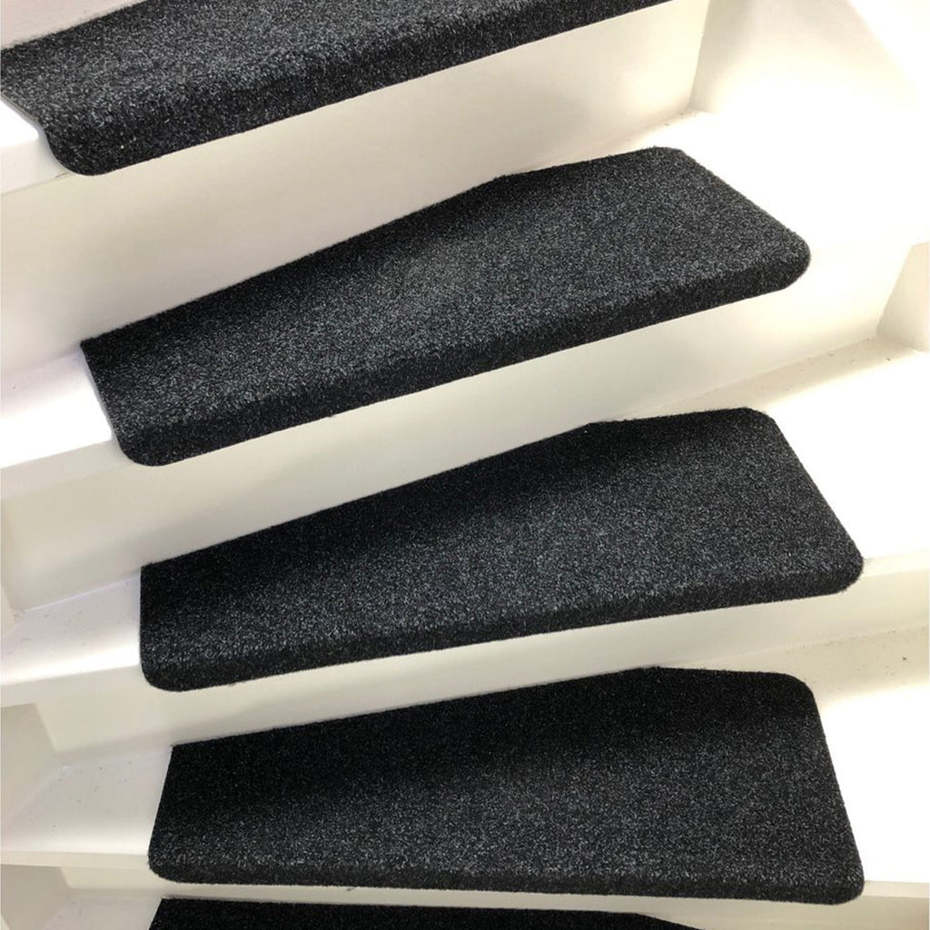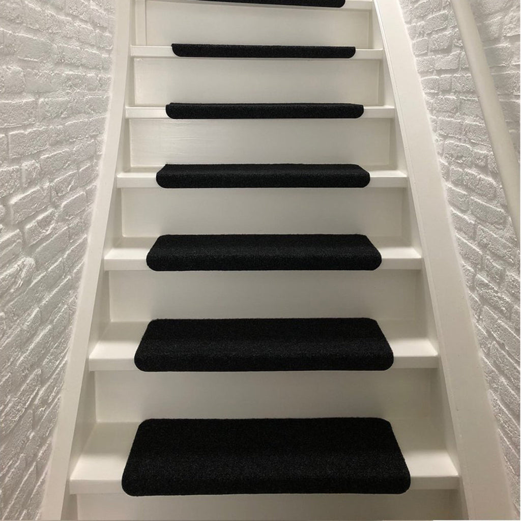 De halve maanvorm is perfect afgestemd op standaard traptreden en dankzij de voorgemonteerde zelfklevende tape bevestig je de matten in slechts enkele minuten – zonder lijm of gereedschap.
