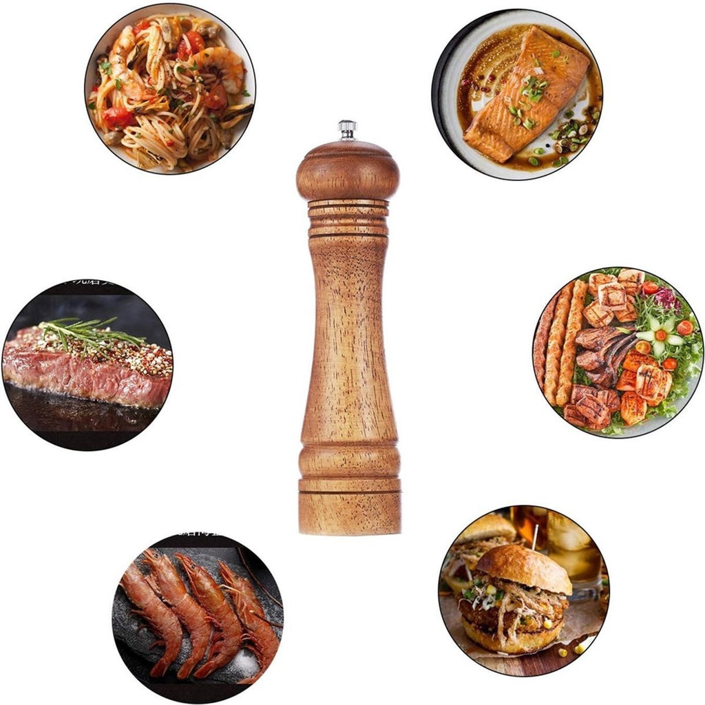 Breng karakter en verfijning naar je keuken met de MONOO Pepermolen en Zoutmolen Set van 26 cm. Deze luxe set, gemaakt van duurzaam bamboe, combineert natuurlijke schoonheid met praktische functionaliteit. Met hun elegante hoogte en strakke vormgeving zijn deze molens niet alleen een lust voor het oog, maar ook een genot in gebruik – of je nu kookt of serveert aan tafel.