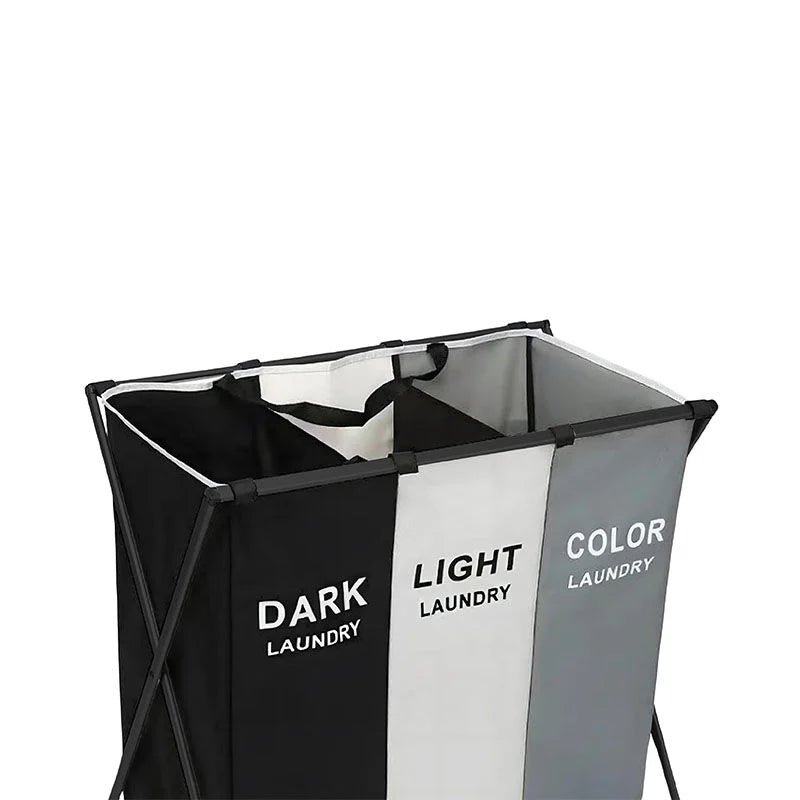 Bespaar tijd met de was – Dankzij de 3 vakken (elk 35 liter) kun je eenvoudig zwart, wit en bont gescheiden verzamelen. Uitgeklapt meet de mand 60 × 50 × 35 cm.